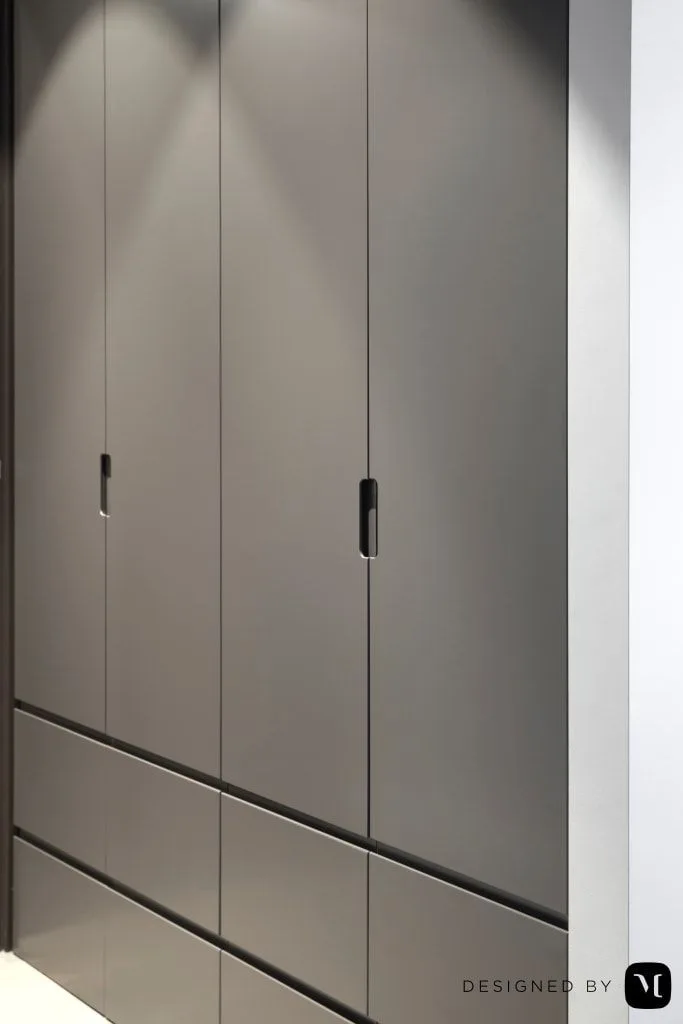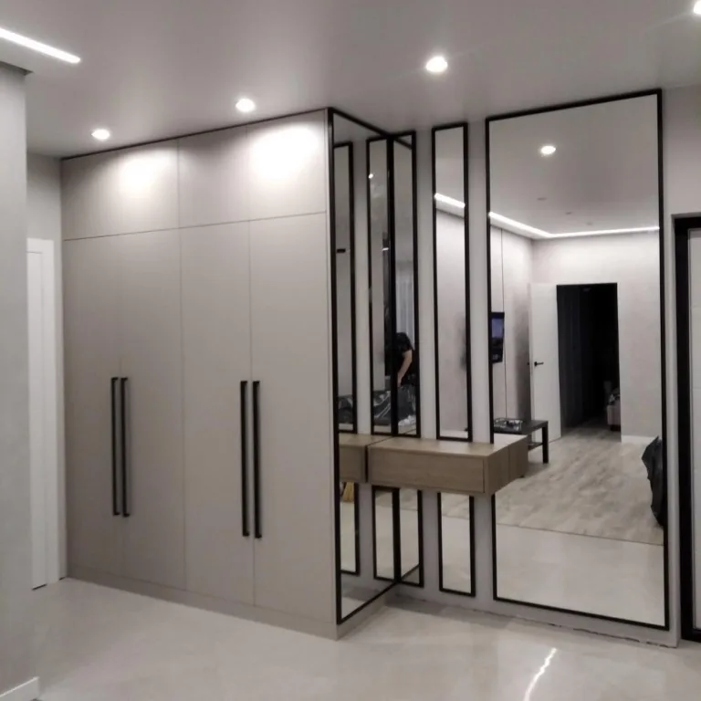 Если производитель дает возможность изменять комплектацию, можно выбрать, чему отдать предпочтение — дизайну или функциональности. Например, для шкафа-купе в прихожей, который будет интенсивно использоваться всеми членами семьи, очень важна надежная раздвижная система, а вот на зеркальном фасаде можно и сэкономить.
